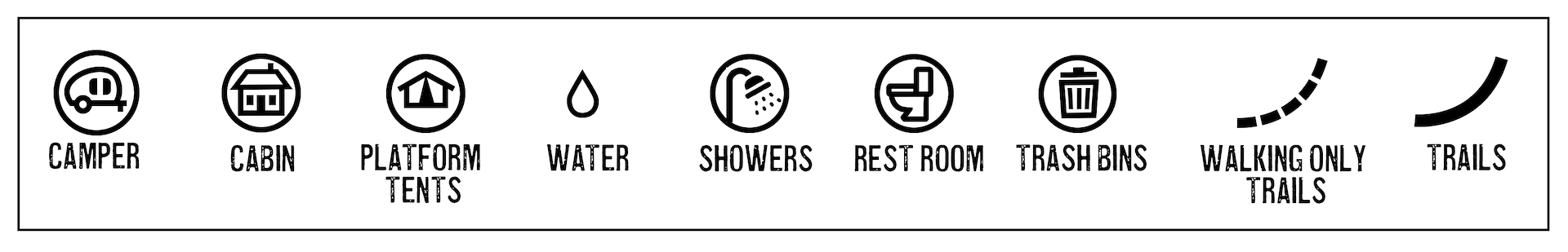 ▼ THE CAMP MAP is a guide provided to each guest, highlighting the campground layout, including bathrooms and water access points. I designed it with a vintage aesthetic that captures the camp’s character while ensuring the layout remains clean, clear, and easy to read.