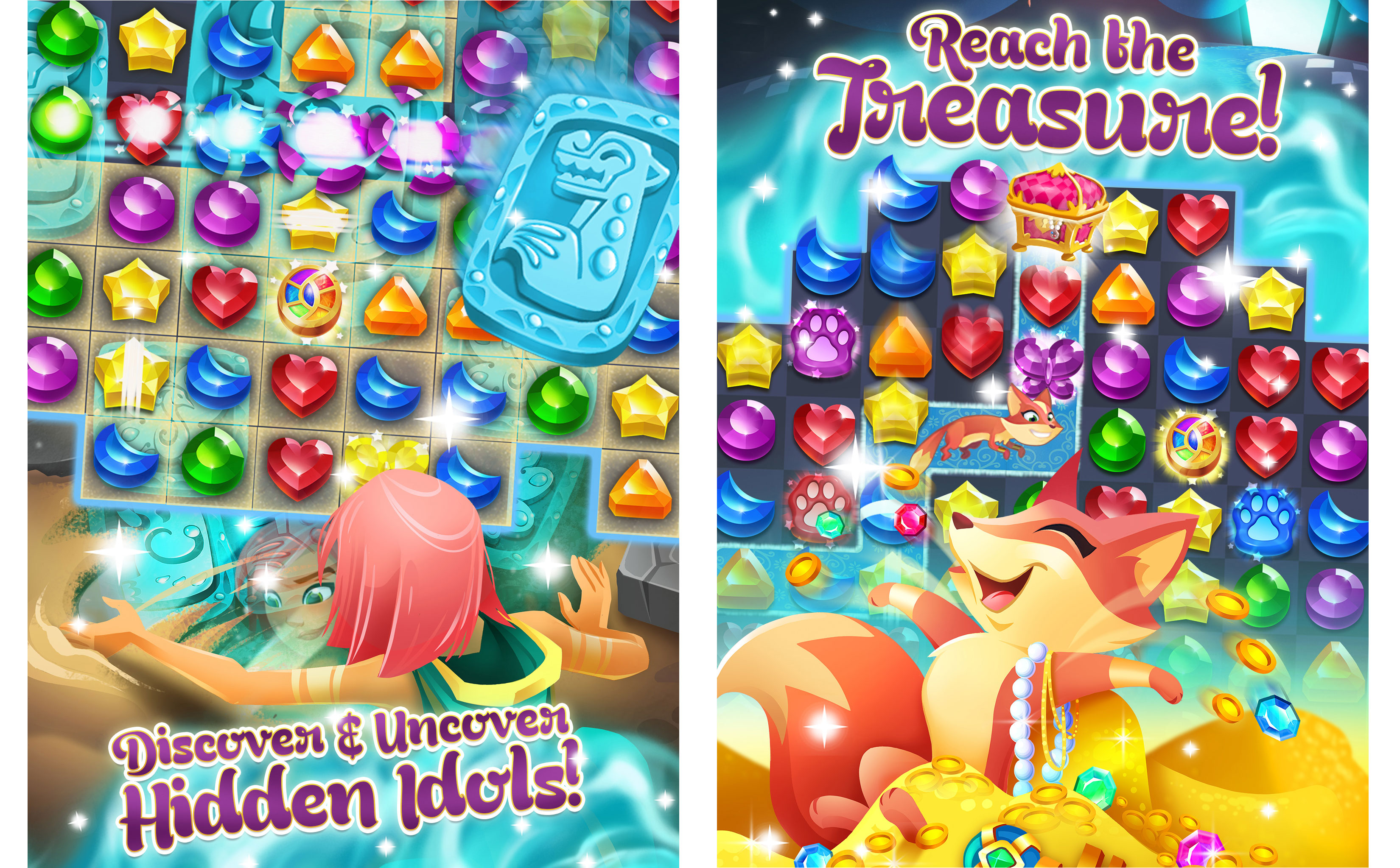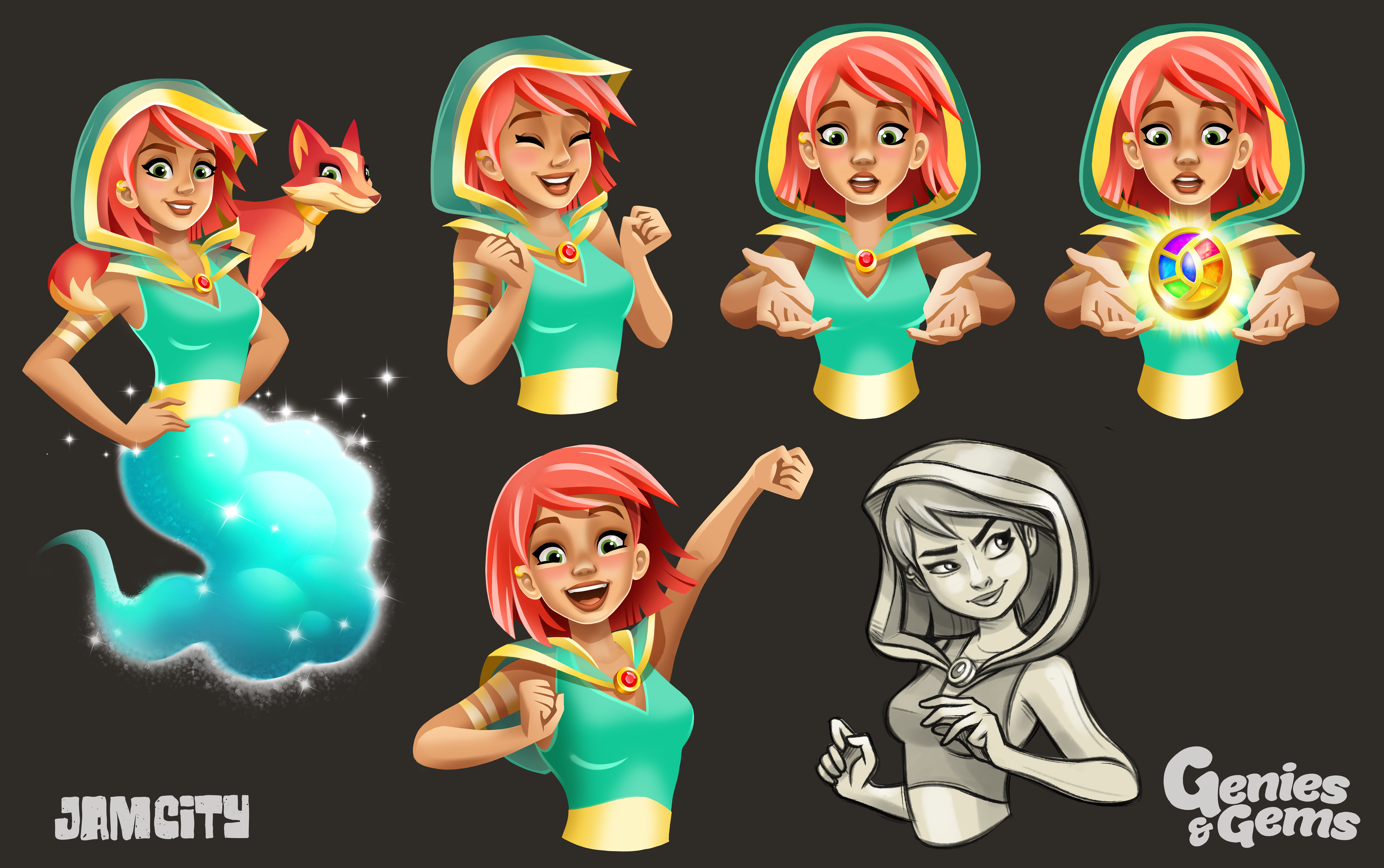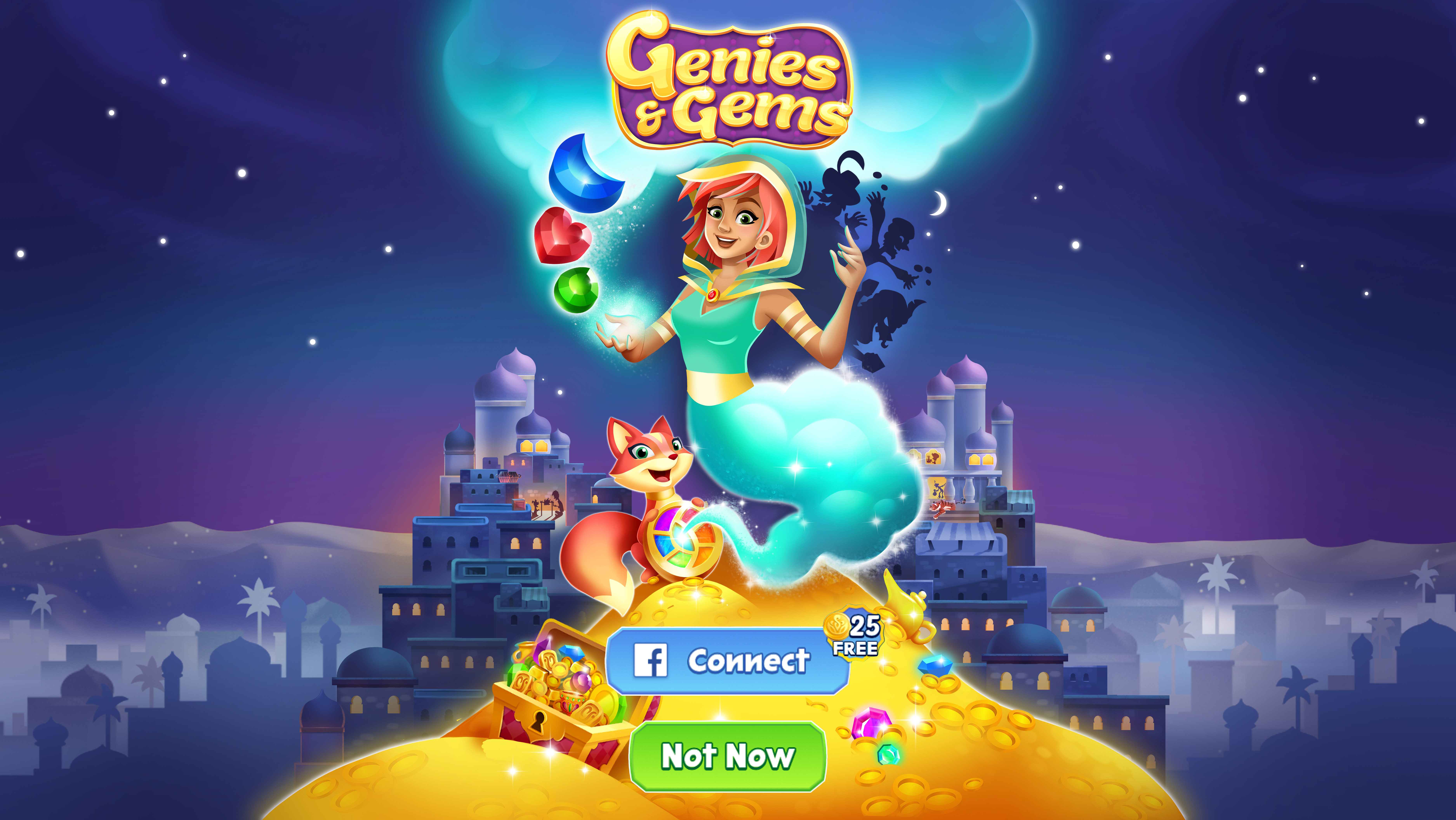 ▼ GENIES & GEMS MARKETING ART & GRAPHIC DESIGN Genies & Gems is a casual Match-3 mobile game created at Jam City. For the images shown below, I created the marketing illustration artwork and designed the accompanying text layouts. These assets were used across social media and other marketing campaigns to promote the game.