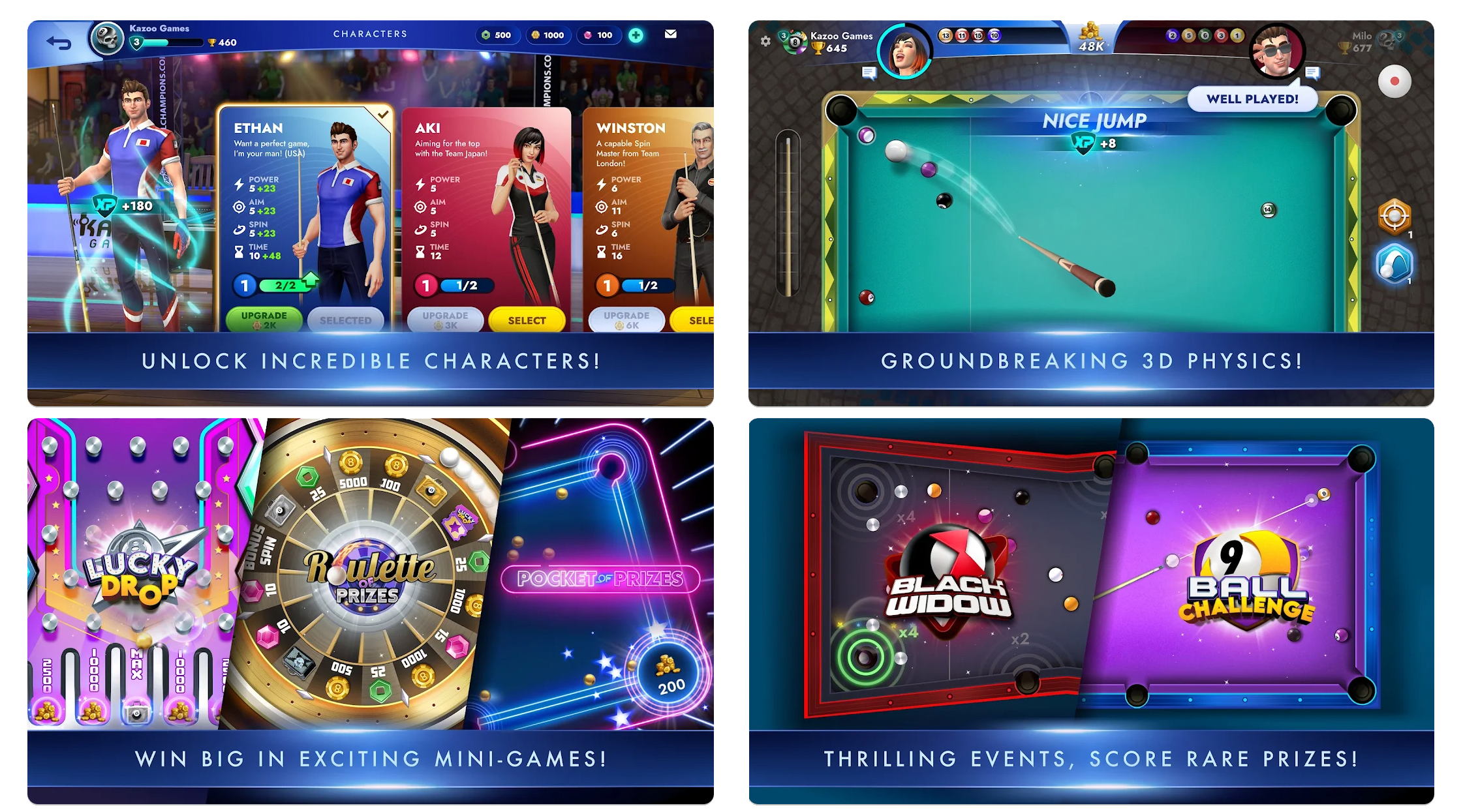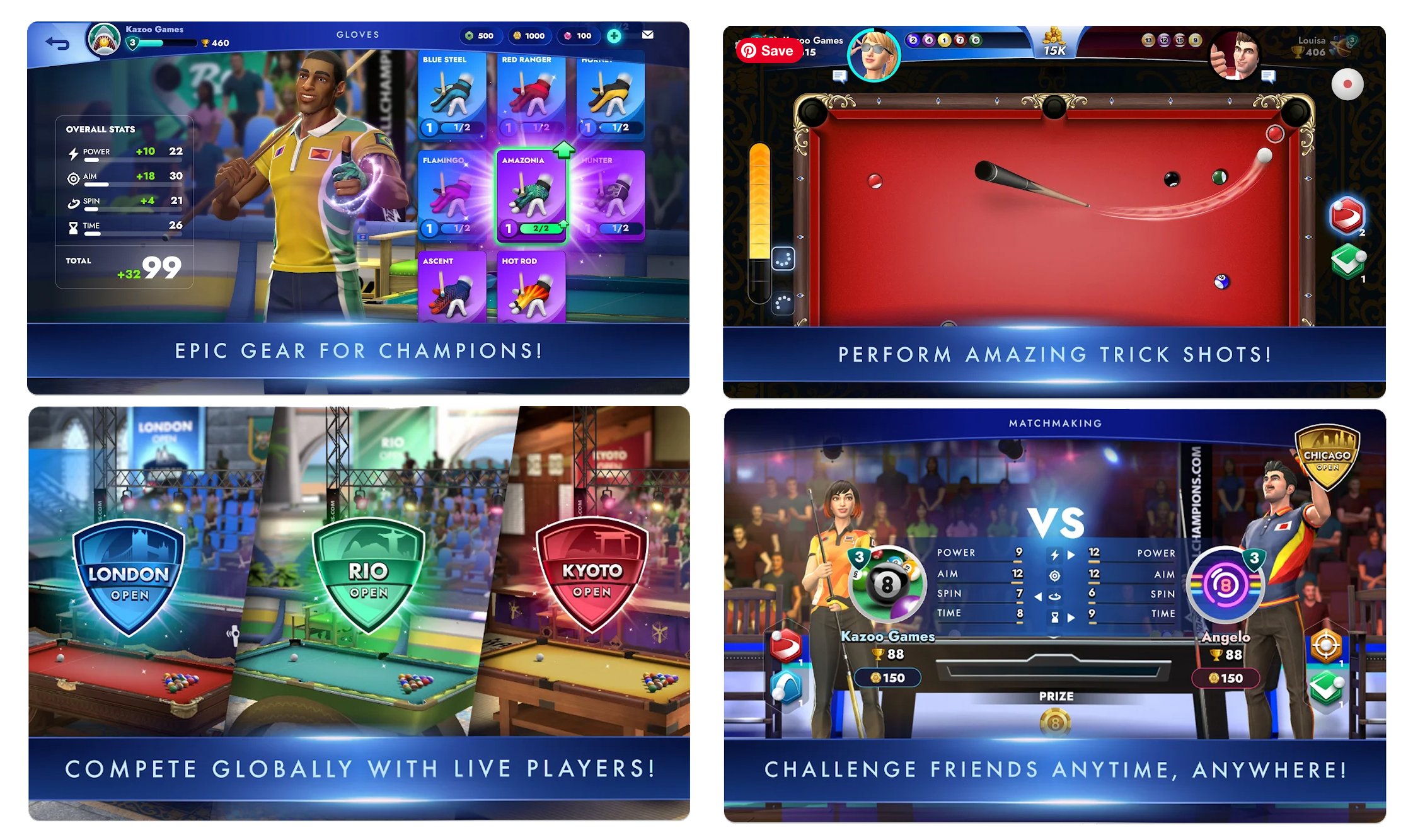 ▼ 8 BALL CHAMPIONS APP STORE PROMO IMAGES These images were featured in the promotional gallery of the App Store to showcase the game and attract new players.